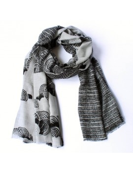 Avec sa trame de fils de laine mérinos fluide et aérienne, ce foulard est très agréable à porter, et procure une chaleur douce et légère. Le motif noir sur fond naturel, graphique et délicat, plaît autant aux hommes qu'aux femmes. Le rendu de l'écharpe varie selon la manière dont on l'enroule autour du cou.